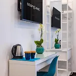Rummen har te-/kaffebryggare, samt plattskärms-TV med satellitkanaler och TV med flera kanaler för gästernas bekvämlighet. I de privata badrummen finns också toalettartiklar.